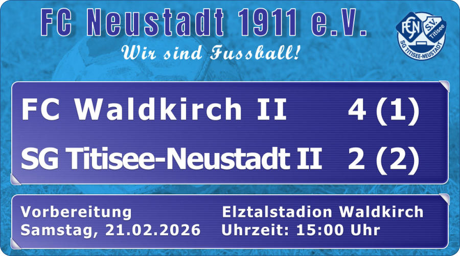 Rundenbeginn: LL 3 * Sa 28.02.2026 * 14:30 Uhr * FC Neustadt I - SpVgg F.A.L. 1:2 (0:1) // KL B 5 * So 22.03.2026 * 12:45 Uhr * FC Pfohren II - SG Titisee-Neustadt II